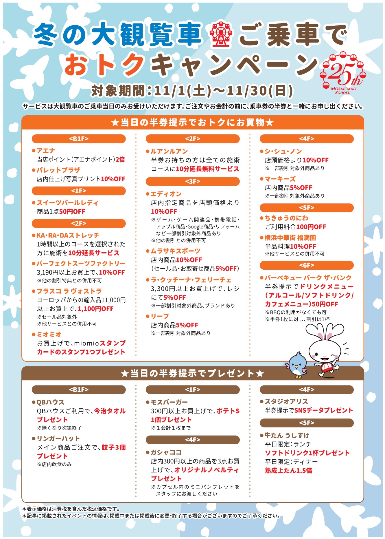 *観覧車チケットは特典を受けられる方、それぞれでお買い求めください。(お一人様分づつ購入してください。)