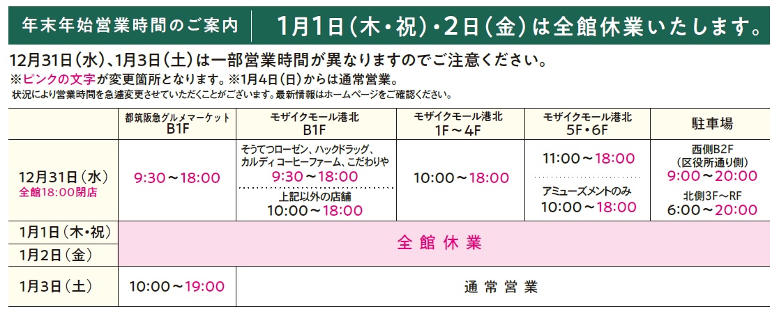 モザイクモール港北お買い物券・全国百貨店共通商品券の使用不可店舗について