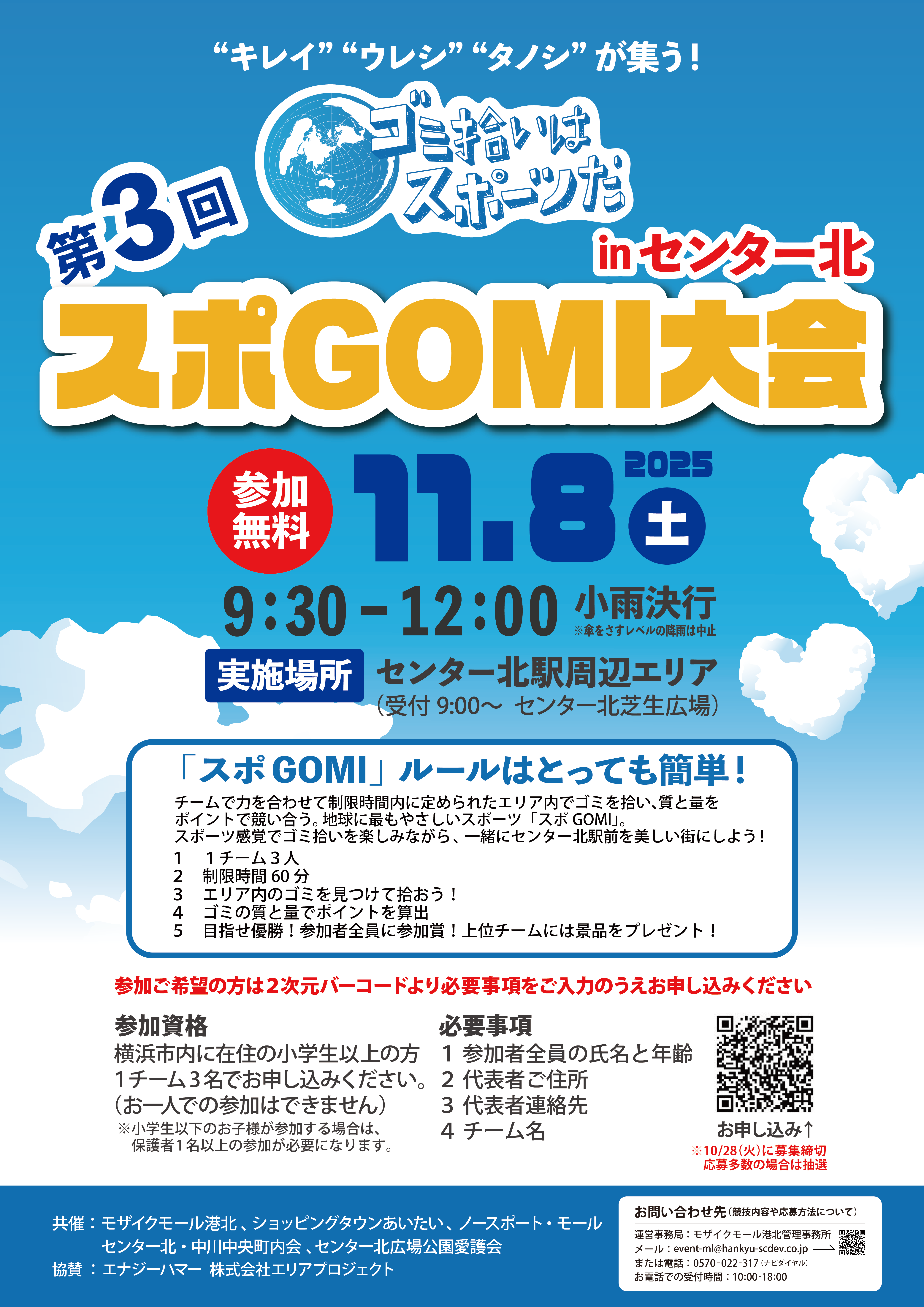 スポーツ感覚でゴミ拾いを楽しみながら、一緒にセンター北駅前を美しい街にしよう!