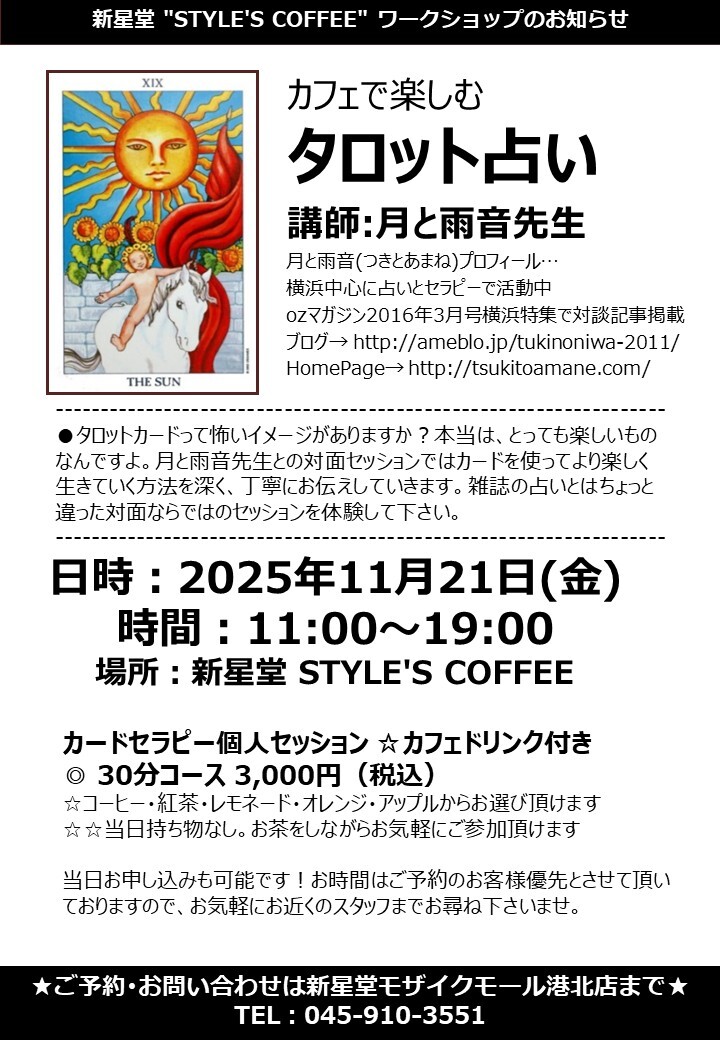 | 場所 | 2F 新星堂 STYLE'S COFFEE |
