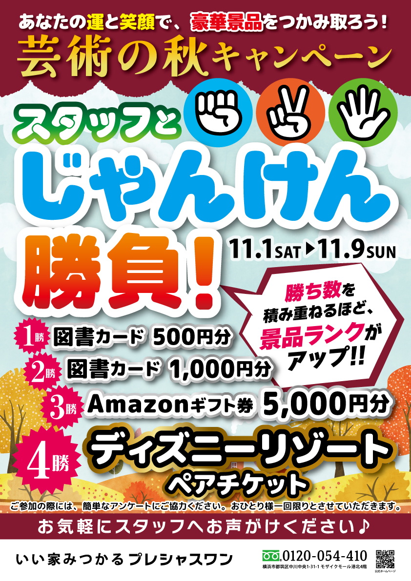スタッフとじゃんけん勝負!勝ち進むと豪華景品プレゼント!!おひとり様1回限りのご参加とさせて頂きます。
