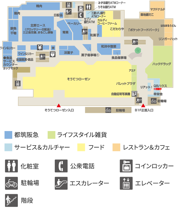 デイリーマーケット食品・生活雑貨・サービスポケットフードパーク(フードコート)都筑阪急グルメマーケット