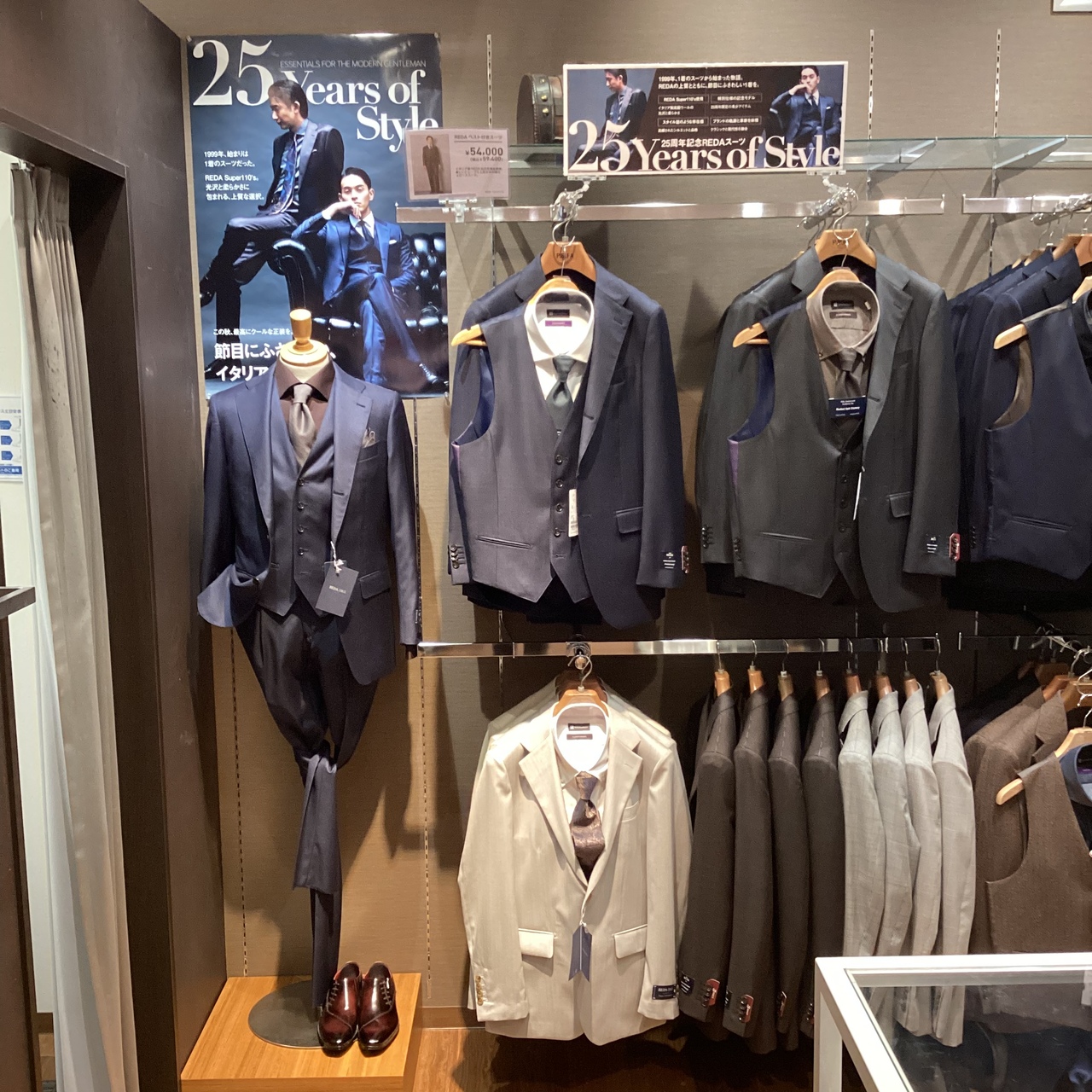 25周年に相応しい新作スーツです。美しいドレープ性と上品な光沢感が特徴。クラシックとモダンを融合したシルエットで、ビジネスにもブライダルにも活躍できます。ぜひ店頭でご試着なさってください。