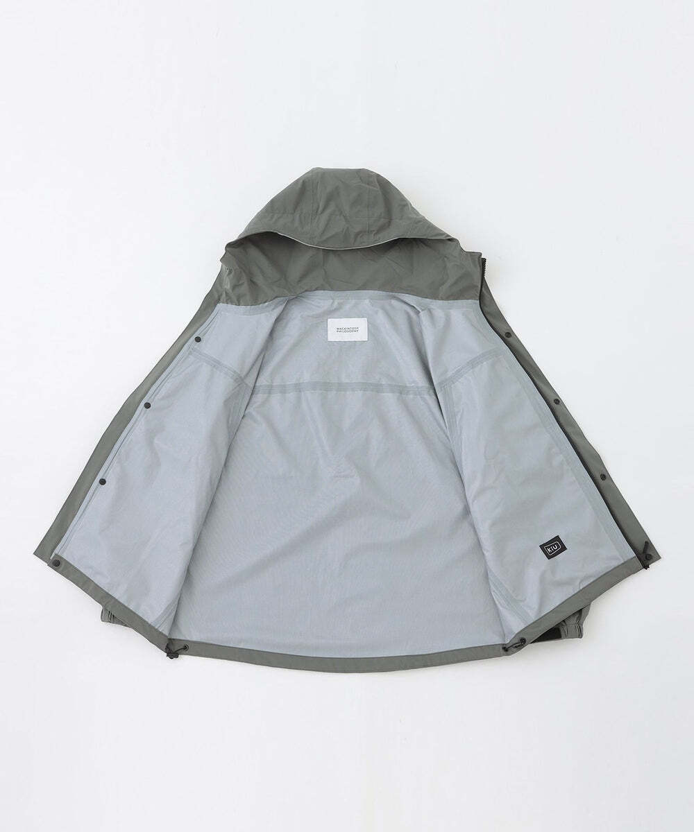 KiUのアウターをマッキントッシュフィロソフィーらしくアレンジ。フロントはジップアップ+隠しドット釦仕様、左腕にフラップポケットを配し、洗練されたデザインです。