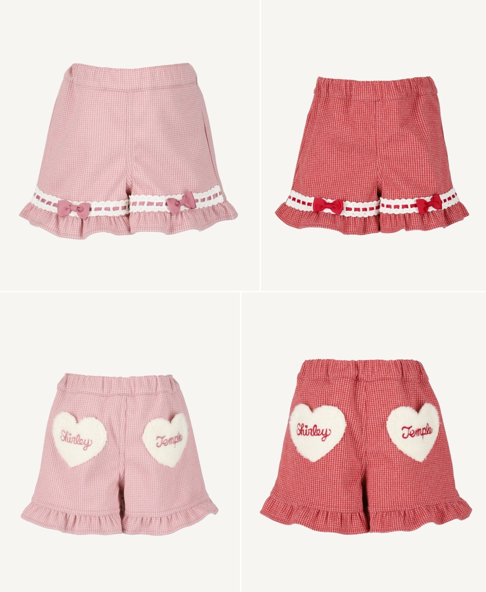 シャーリーのロゴ入りのモコモコとしたハートがバックポケットにあり、後ろ姿もとってもキュート😆💕ピンクとアカの二色展開でシャーリーのお洋服ともバッチリ合います👌🎶