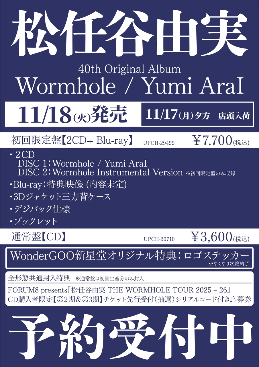 『Wormhole / Yumi AraI』が11月18日に発売!