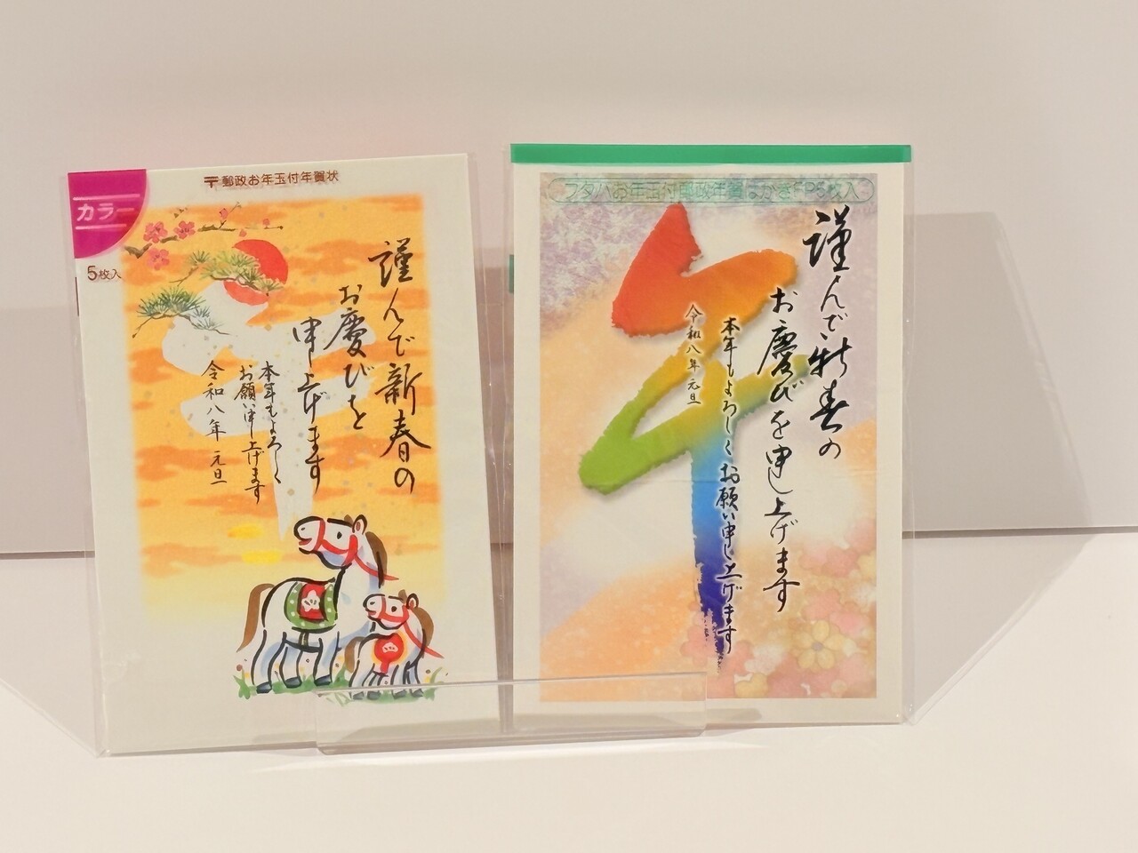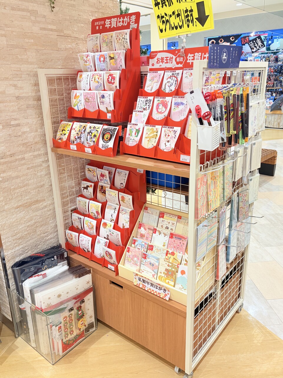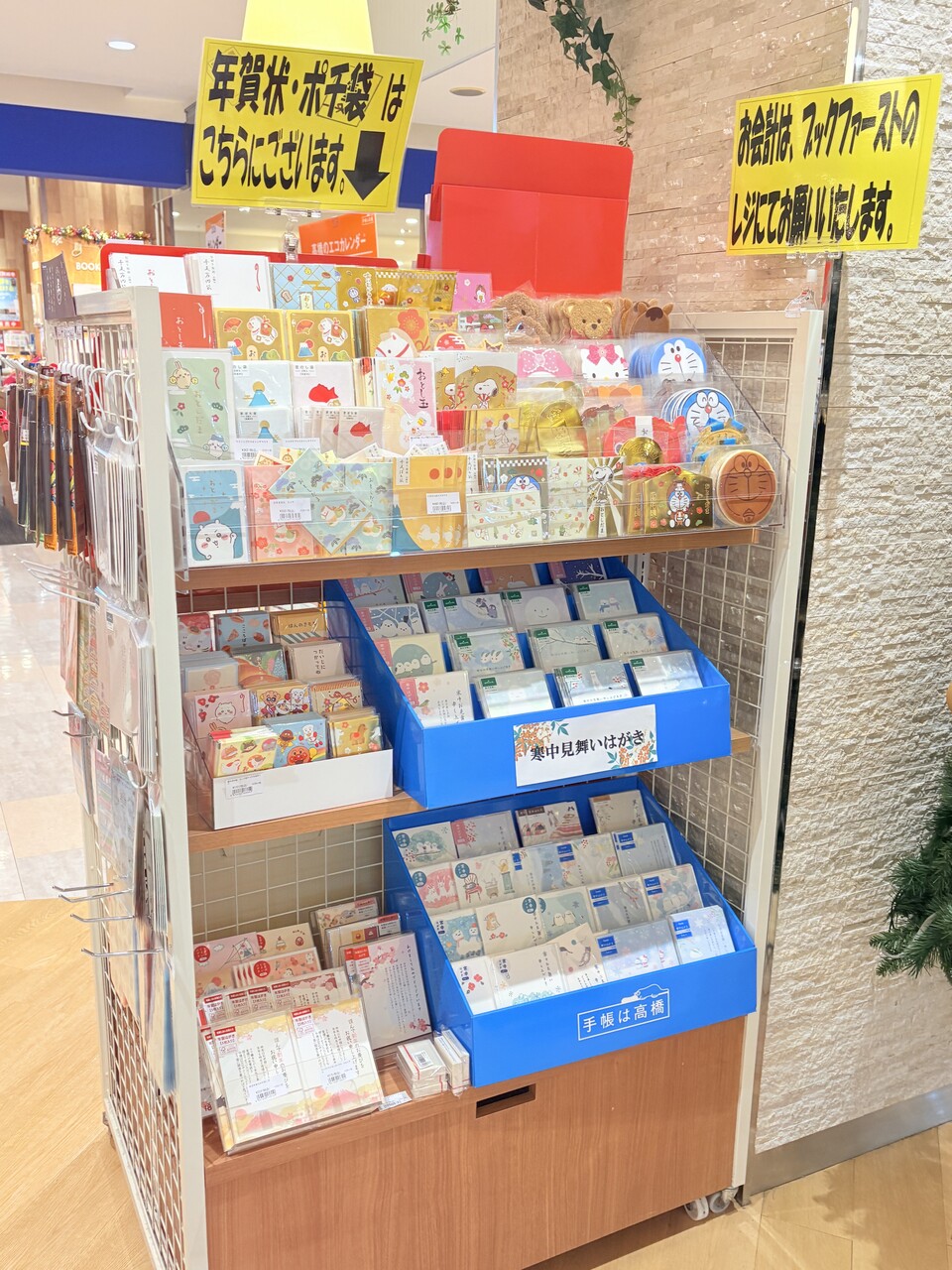 定番柄から可愛らしいキャラクターものまで、年賀状・ポチ袋各種を取り揃えております!店舗前ベンチスペースにて販売中です。