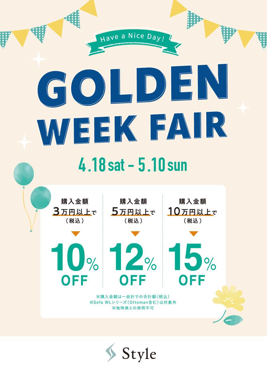 Styleショップにて、ゴールデンウィークフェアを開催します!