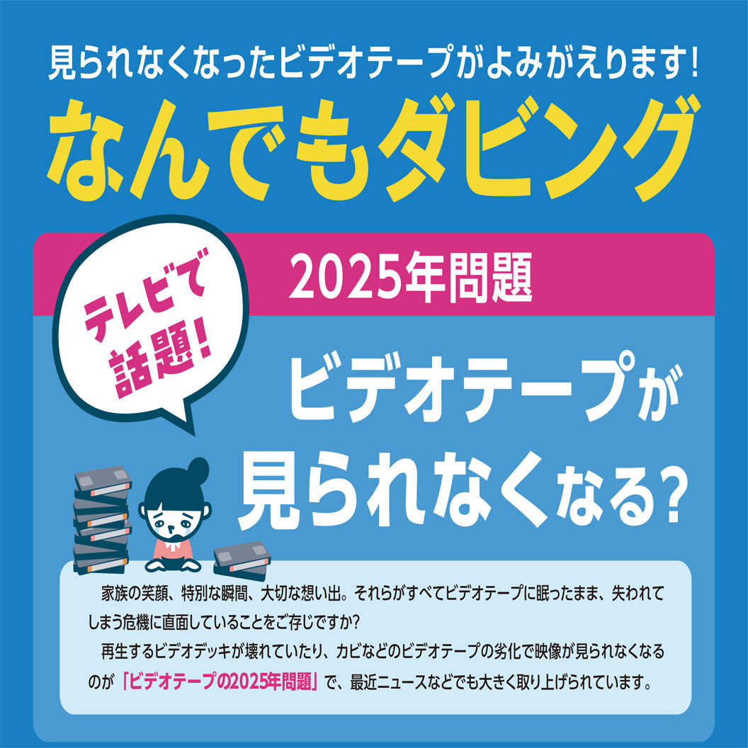 テレビでも話題の「ビデオテープの2025年問題」VHS方式の家庭用ビデオデッキの生産が終了し、再生機器の修理やサポートを請け負う企業も減っています。