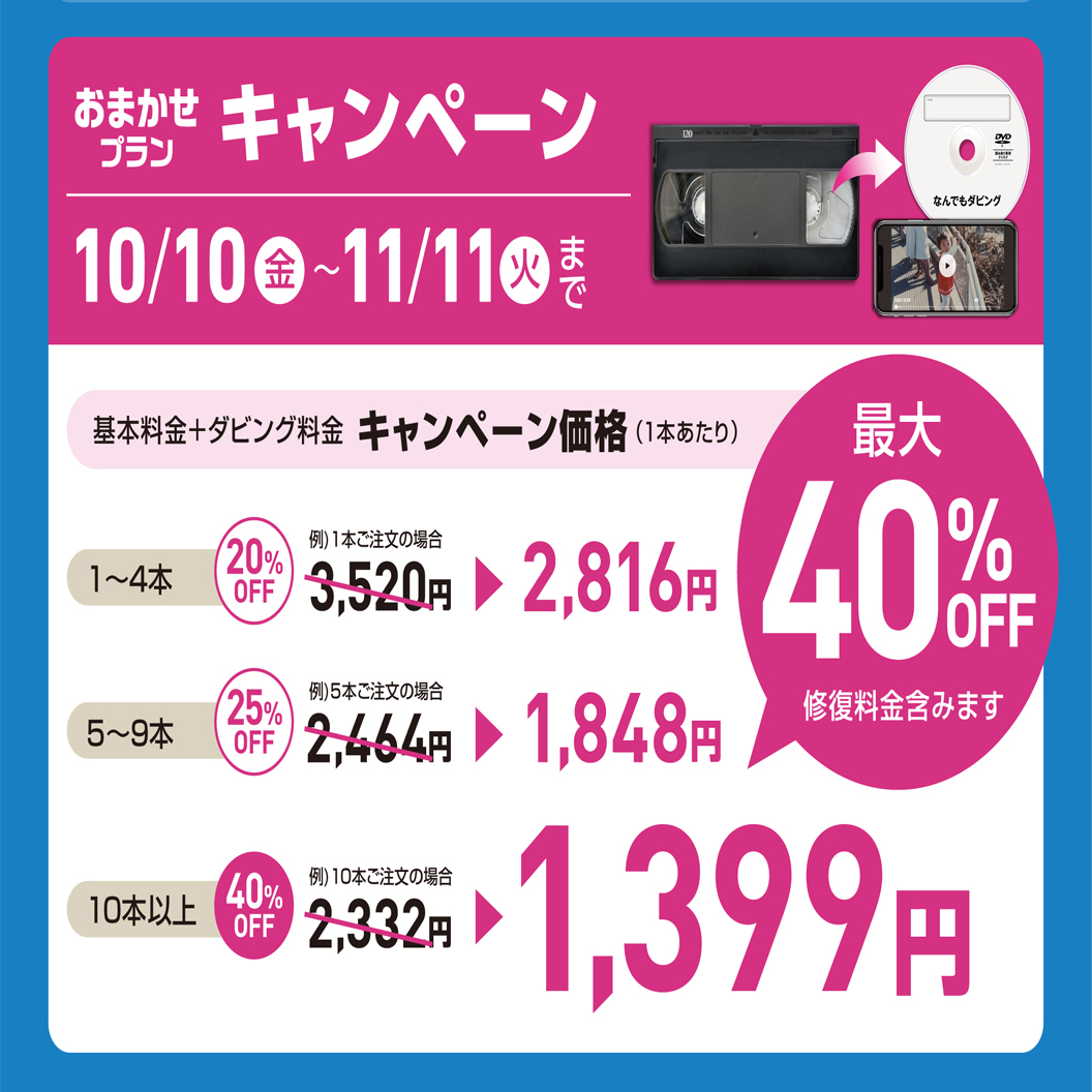 10本~:基本料金&ダビング料40%オフ!!!