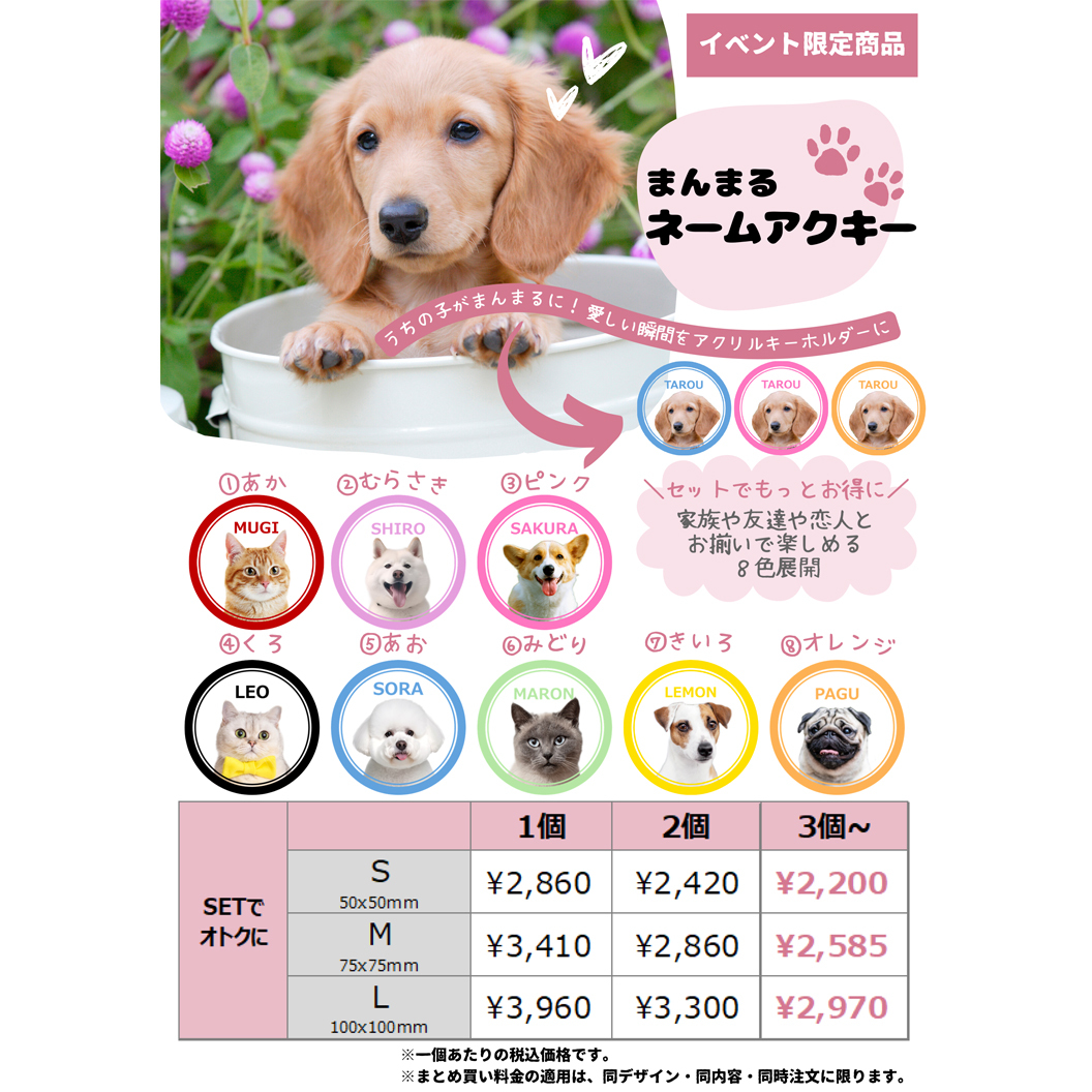 こちらも前回大人気だった、イベント限定商品です! ペットの愛しい瞬間をまんまるのアクリルキーホルダーに!